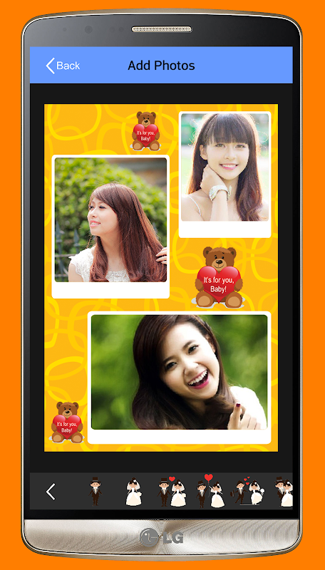 اجازه دهید که قاب شما می خواهم بهترین را انتخاب کنید. سپس، اضافه کردن عکس های خود را از گالری. شما می توانید حرکت، زوم، تلنگر، آینه، چرخش عکس و اضافه کردن برچسب دوست داشتنی.