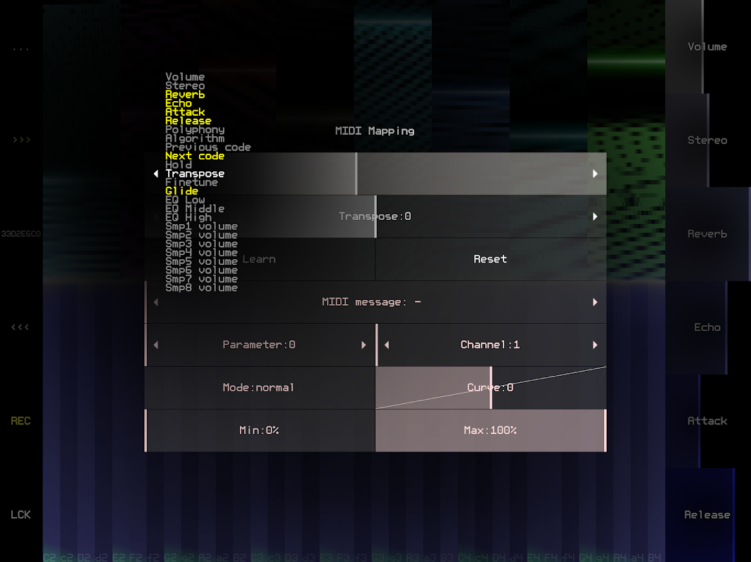 * بیش از ۲۰ پارامتر را میتوان از طریق MIDI یا مستقیماً از طریق رابط برنامه کنترل کرد: تنظیمات -> نگاشت MIDI؛