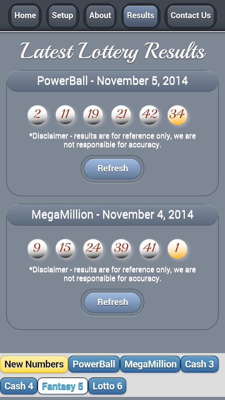 تولید اعداد تصادفی برای بازی در قرعه کشی خود، شامل: مگا میلیون، توپ انرژی، لوتو 6، فانتزی 5، cash4 و cash3. هر بازی می تواند به دلخواه و ذخیره به گوشی خود را. این برنامه همچنین شما را با آخرین عدد برنده برای مگا میلیون و قدرت توپ فراهم می کند.