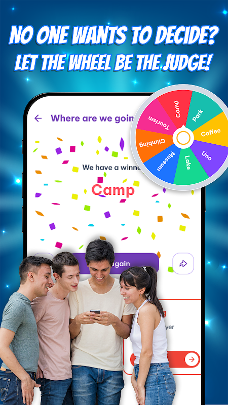 هر زمان که از فکر کردن به انتخاب های ساده خسته شدید، اجازه دهید Lucky Spin: به شما کمک کند تصمیم گیری را به عهده بگیرید! فرقی نمیکند رستورانی را انتخاب کنید، یک بازی مهمانی ترتیب دهید، یا تیمها را برای یک مسابقه تقسیم کنید، فقط بچرخید و بگذارید سرنوشت تصمیم بگیرد. سرگرم کننده، سریع و همیشه منصفانه است.