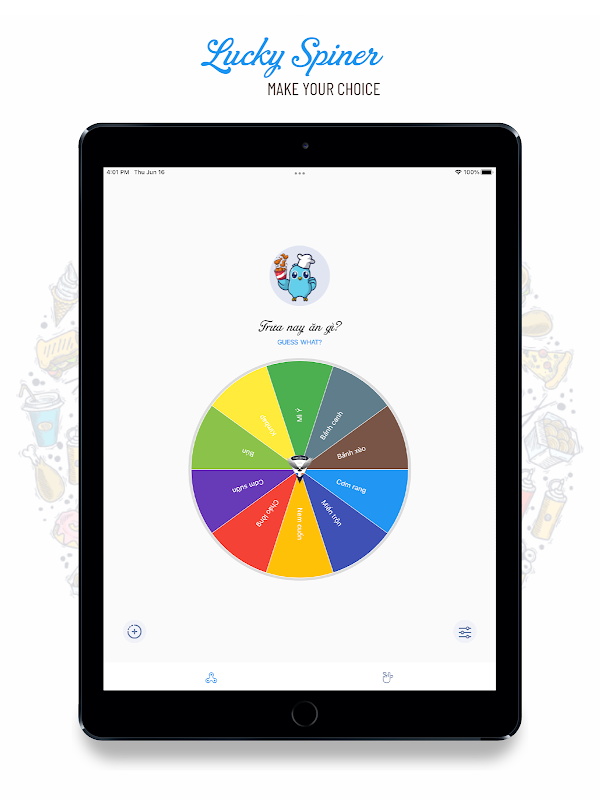 Put anything you want on the wheel and make unique raffle pickers, random name pickers to draw names of prize winners, create your own spinner games which are much more fun than just flipping a coin or make unlimited lucky wheels to help you answer such questions as What should I do? Where should I eat? Where should I go? Make your decisions in a fun way!