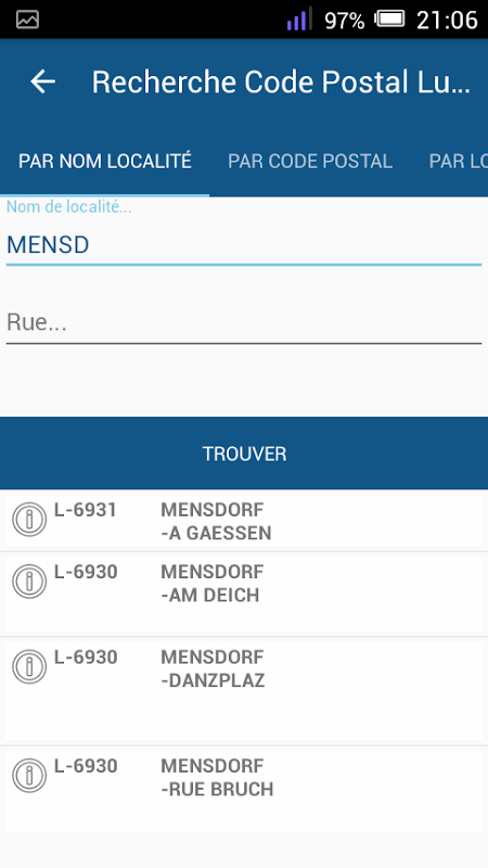 پیدا کردن یک کد پستی از هر مکان در لوکزامبورگ با دادن محل و جاده،