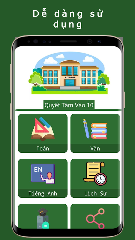 - Ứng dụng có sẵn gần 1000 bộ đề được bộ kiểm duyệt (bao gồm cả đề thi), người dùng có thể dễ dàng luyện tập để chuẩn bị cho kì thi vào 10.