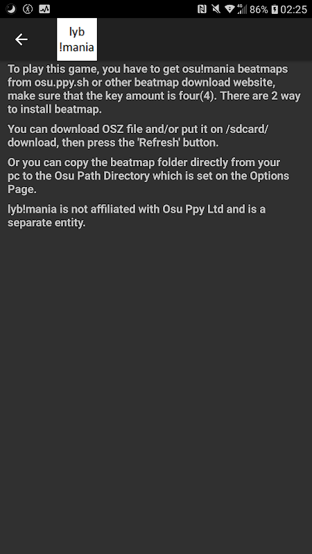 lyb! mania با Osu Ppy Ltd وابسته نیست و یک نهاد جداگانه است.