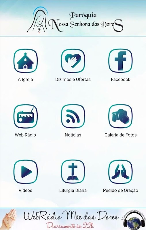 A paróquia Nossa Senhora das Dores buscando sempre novos meios de evangelização e forma de ir mais longe nesta evangelização, coloca a disposição de todos os nossos fiéis o nosso site, nosso aplicativo e nossa web rádio.