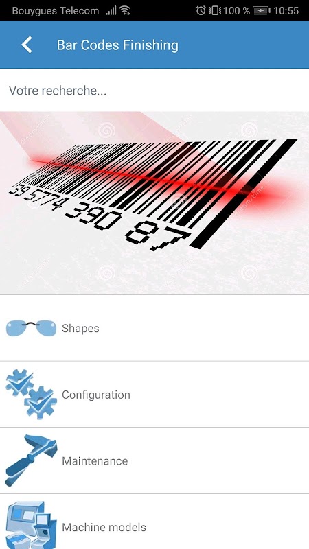 This application is an online catalog of the bar codes provided by Essilor for the maintenance of the products.
