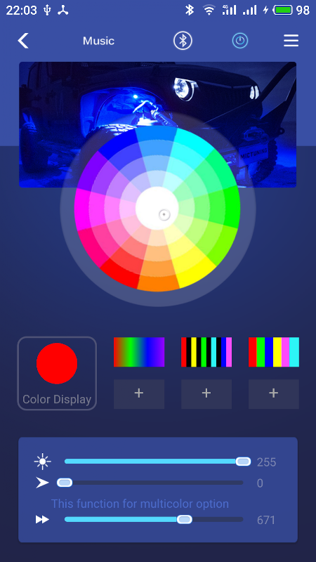 M LIGHT APP فناوری BLE را با پروتکل هوشمند بلوتوث تصویب می کند ، که به شما امکان می دهد محصولات روشنایی هوشمند LED MICTUNING را کنترل و تنظیم کنید. ویژگی های چند رنگ RGB ، فضای شگفت انگیز را ایجاد می کند. مناسب برای استفاده در خودرو و سایر موارد.