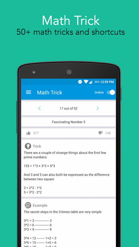 ترفندهای ریاضی بسیار مفید و ثابت می شود کاملا یک ابزار دستی در امتحانات رقابتی که در آن هر فقره دوم هستند. این نرم افزار فراهم بیش از 50 ترفندهای ریاضی برای صرفه جویی در وقت با ارزش خود را در سالن امتحان.