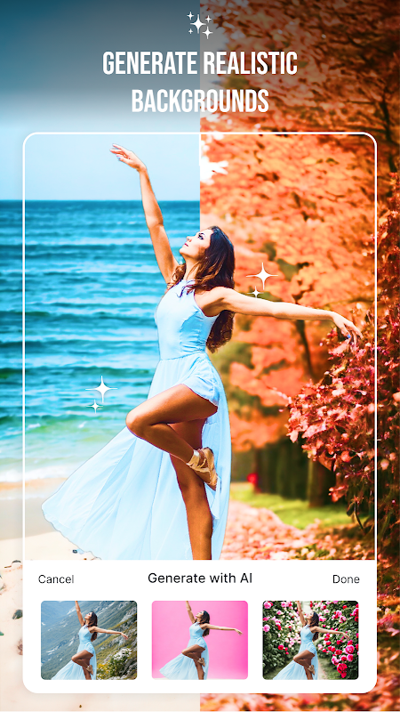 2. تغییر پس زمینه: پاک کردن پس زمینه برای هر موضوع. افراد، محصولات، حیوانات خانگی، اتومبیل، مبلمان و هر مورد دیگری در یک عکس. یک پس زمینه شفاف نگه دارید یا یک پس زمینه سیاه، سفید یا رنگی اضافه کنید. یا حتی موضوع را به هر تنظیمی که می توانید با پس زمینه های ایجاد شده توسط هوش مصنوعی تصور کنید اضافه کنید! *