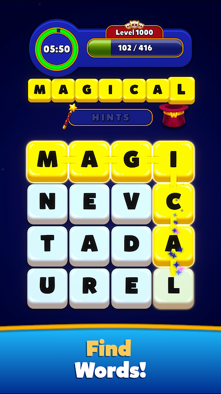 به سفری بیپایان در دنیای کلمات جادویی قدم بگذارید. در فصلها پیشرفت کنید، مناطق جدید را باز کنید و پیچشهای تازهای را کشف کنید که سفر را شگفتانگیز نگه میدارند. برخی از مراحل شما را به سرعت فکر کردن وادار میکنند - کلمات کوتاه و زیرکانه را قبل از اینکه تایمر از دستتان برود، زنجیرهوار تکرار کنید. برخی دیگر نیاز به صبر، دقت و توانایی تشخیص یک کلمه با ارزش بالا که در دیدرس پنهان شده است، دارند.