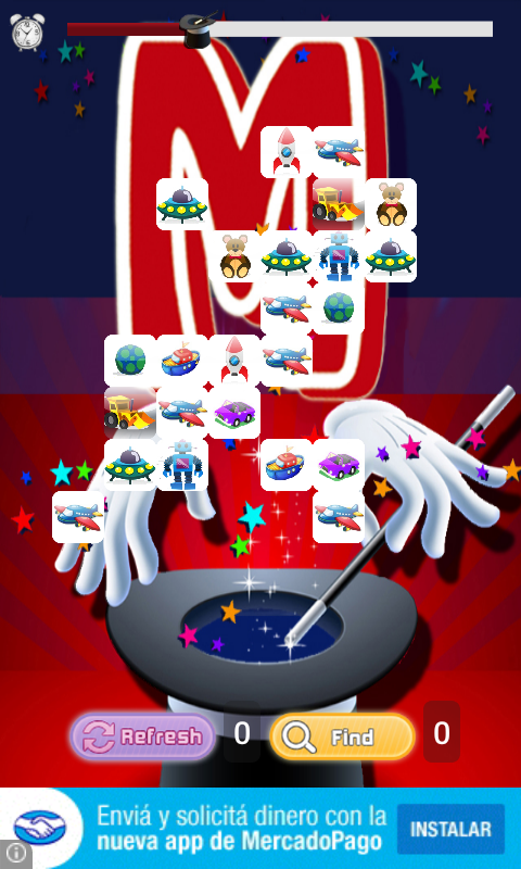 Otra característica emocionante de MAGIMUNDO El Juego que lo hace aún más impresionante que un simple juego es que usted debe encontrar los iconos que enlazan entre sí de alguna manera! Cuando usted hace un partido, MAGIMUNDO El Juego le mostrará el enlace. De esta manera usted también consigue un poco de ayuda en el camino. Puede utilizar el botón ACTUALIZAR 3 veces, esta mezcla los tarjetas de juego por lo que es más fácil de encontrar coincidencias que las unen. También puede utilizar el botón FIND 3 veces, y esto encontrará los enlaces del juego por usted.