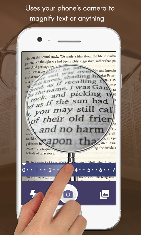The app contains 4 tools Telescope, Microscope, Magnifying Glass and Binocular with zooming features. It simulates the functioning of these tools. Each tool will zoom. You can use these tools for better reading small fonts, see far or distance using binocular, zoom microscopic figures etc.