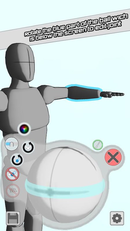 - ویرایش هر گونه مفصل برای ایجاد یک حالت طبیعی و بصری، شما می توانید بخش آبی توپ که در زیر صفحه قرار دارد را برای ویرایش مفصل چرخان، آن را آسان استفاده کنید