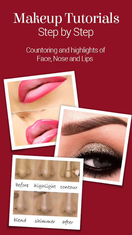 Makeup Tutorials application brings makeup and beauty tips and techniques for makeup lovers. In Makeup Tutorials application you can findout image based tutorials of foundation and face scuplting, eye makeup, lip enhamcement and makeup products knowledge and description. Makeup Tutorials like contouring with highlights and foundation, eye makeup tips eye shadow use, smokey eyes and glittery eyes, natural eyes and sexy Arabic eyes, use of cosmetics and nose contouring with neck contouring, lipstick techniques, use of blush and bronzer, mascara, eyelashes and eyeliner tutorials. Know about best makeup products and use of brushes. Makeup Tutorials are really helpful to enhance your beauty and style.