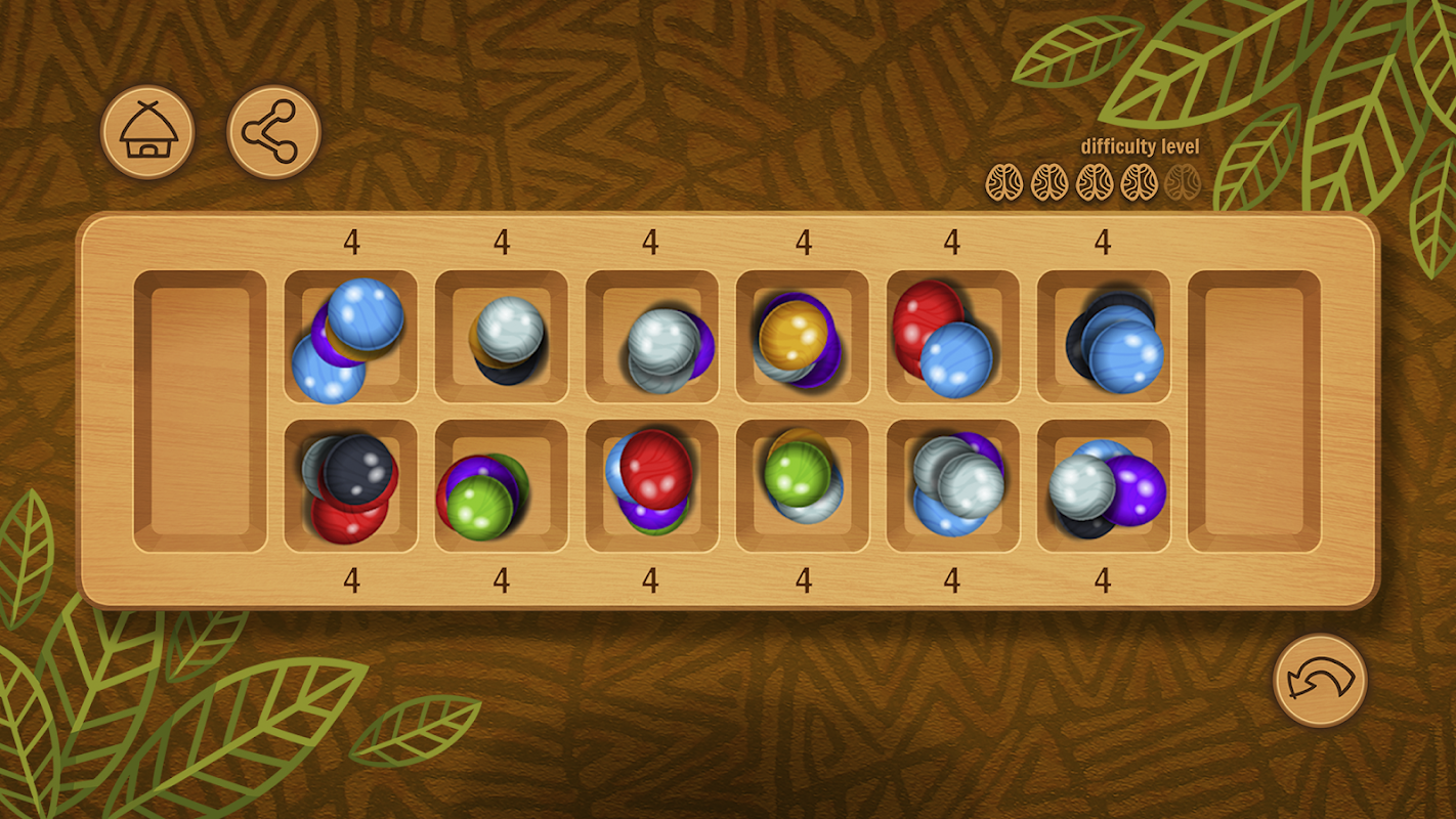 Whether you're a beginner and prefer simple mancala or an expert and prefer to play mancala hard, in our game you will find different mancala levels. Also now, during the game, you can see which level you are playing at.
