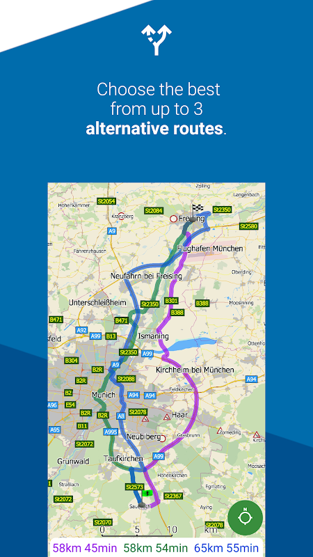 - ویژگی های ممتاز: مسیرهای جایگزین، نمایشگر سربالا، بدون تبلیغات، تم های رنگی برنامه