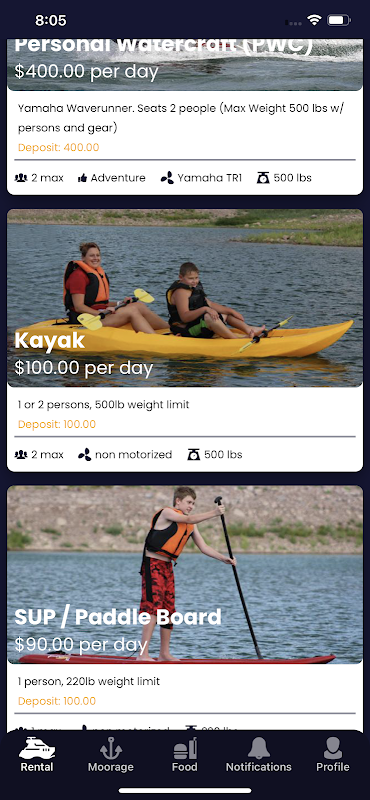 • تجربیات اجاره: دریاچه مید را کاوش کنید، سد هوور را ببینید، خانواده را بیاورید و ورزش های آبی را امتحان کنید! تجربه دریاچه مید خود را به یاد ماندنی تر کنید! به راحتی و به سرعت قایق های ورزشی، قایق های پانتون، جت اسکی، ویورونرها، کایاک ها، SUP ها را در دریاچه مید اجاره کنید. مشاهده در دسترس بودن، رزرو آسان و سریع. قراردادها را امضا کنید، ویدیوهای ایمنی مورد نیاز را تماشا کنید، و رانندگان ثانویه را قبل از رسیدن اضافه کنید. پس از ورود روز خود را آسان کنید و سریعتر روی آب بروید و به تفریح برسید. این برنامه به شما کمک می کند تا فرآیند اجاره قایق سریع و آسان داشته باشید.