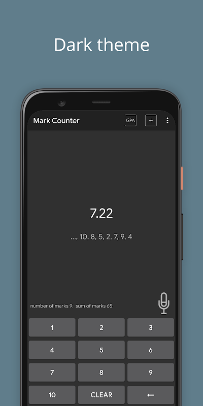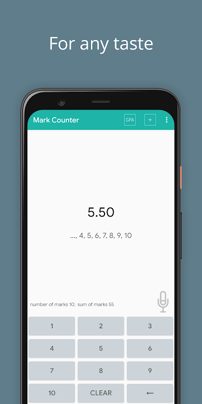 Grade counter - ابزاری مفید و مناسب برای محاسبه نمره متوسط و نهایی برای یک سال / ترم / ربع / نیم سال. پیشخوان رتبه بندی دارای 3 سیستم رتبه بندی: 5 امتیاز ، 10 امتیاز و 12 امتیاز است ، بنابراین خیلی ها راحت خواهند بود که میانگین نمره خود را در نظر بگیرند. این برای معلم / دانش آموز / دانش آموز بسیار مفید خواهد بود. به جای کار طولانی و خسته کننده با ماشین حساب ، فقط چند دکمه را کلیک کنید یا اصلاً صفحه را لمس نکنید: برنامه دارای عملکرد ورودی صوتی است که به شما امکان می دهد تخمین ها را در صدای خود وارد کنید! پس از آن می توانید برنامه را مشاهده کنید ، بدانید که چگونه عملکرد دانشگاهی در طول سال تغییر کرده است. با شمارش نمرات به طور جداگانه برای هر موضوع ، می توانید بلافاصله نمونه نهایی را دریابید: عملکرد محاسبه نمره میانگین نهایی به شما در این زمینه کمک می کند. علاوه بر این ، در برنامه شما می توانید نه تنها میانگین نمره را بخوانید: در بخش "فرمول های ویژه" می توانید تخمین بزنید که توسط فرمول ویژه (مانند فرمول دانشگاه USM) در نظر گرفته شده است. اگر ناگهان فرمول مورد نیاز خود را پیدا نکردید ، در مورد آن برای من بنویسید ، و من سعی خواهم کرد که آن را اضافه کنم