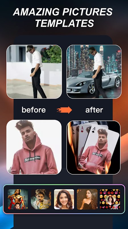 Create stunning music status videos with photos and songs using thousands of lyrical templates and magic video effects.