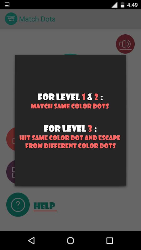Match Dots is an engaging but little bit challenging game especially developed for children and adults. In this game, player needs to shoot a dot with the same colour to complete the level. This game has 3 levels to complete.