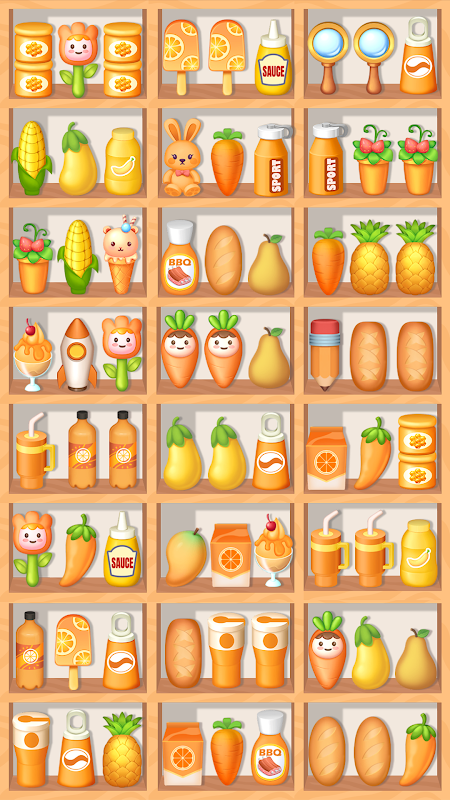2. در سازماندهی بازی های مسابقه 3، می توانید کالاها را به سادگی با ترکیب اقلام مرتب سازی و ترخیص کنید تا تمام قفسه ها خالی شوند.