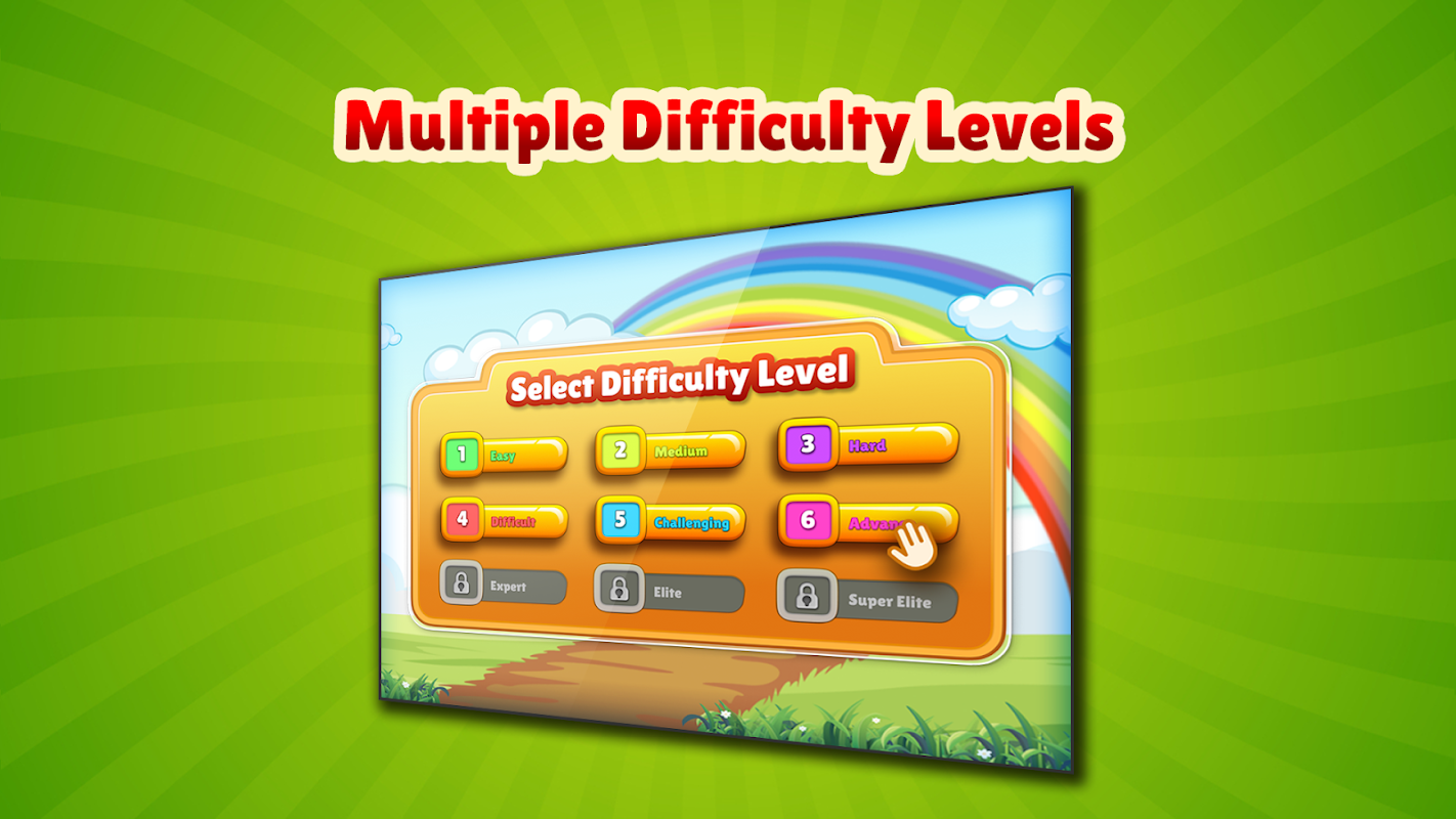 - سطوح چند سطحی بازی: آسان (2 x 3 پازل)، متوسط (2 x 4 پازل)، سخت (3 x 4 پازل)، دشوار، چالش برانگیز، پیشرفته، متخصص، نخبگان و فوق العاده
