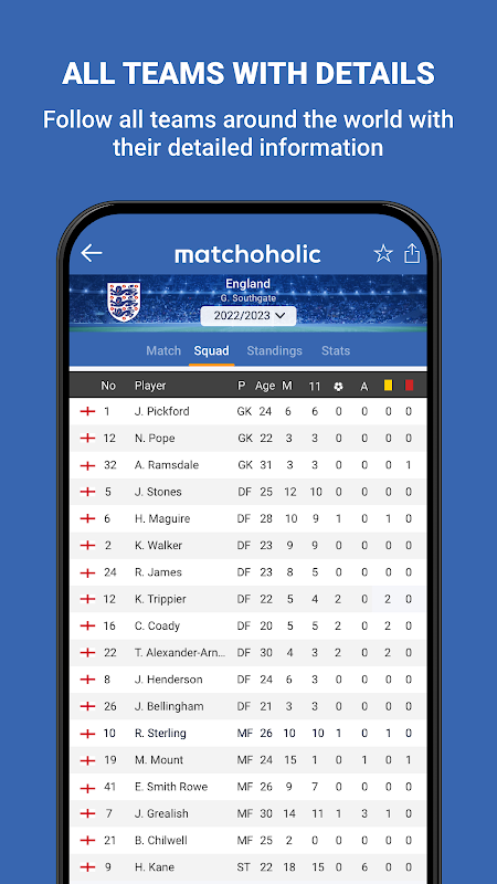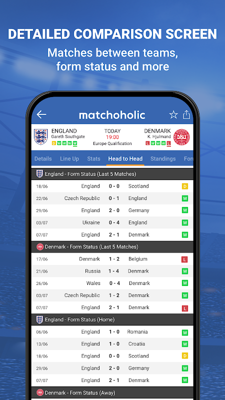 سریع ترین اعلان های گل، نتایج زنده، آمار دقیق، مقایسه عمیق تیم ها و پروفایل های بازیکنان در موبایل شما با Matchoholic وجود دارد.