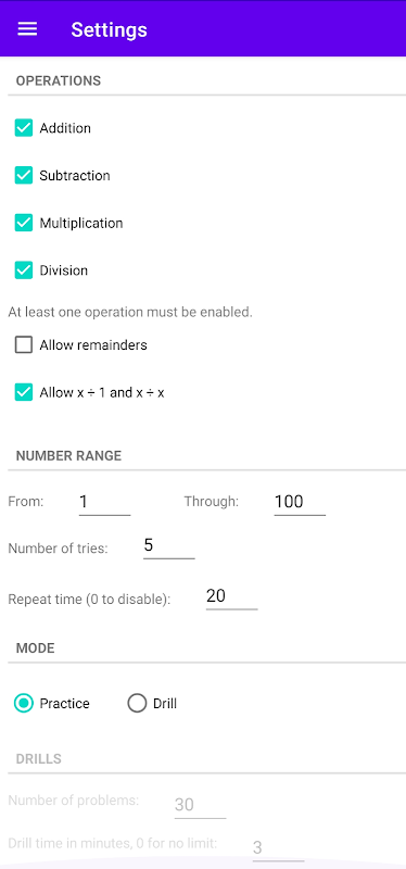 Math Flash provides fun drills and practices for simple math problems. The app is both self-voicing and accessible with the screen reader TalkBack. Math Flash announces each problem as it comes up. Teachers, parents, and students can set the range of numbers, the mathematical operations, the number of tries, and more.