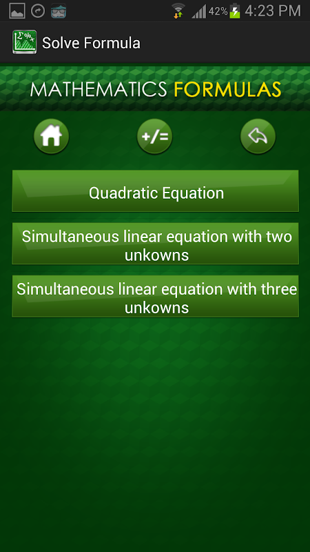 Mathematics Formulas is an application, it can calculate formulas which are the most used and most famous to all people involved in Mathematics.