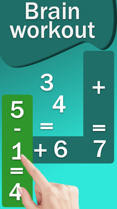 "Math games - brain workout" is a fun math game where you have to move math pieces, drag numbers and math signs to solve the equation puzzle. and match the math pieces.