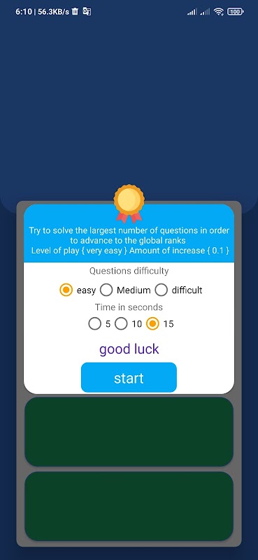 - می توانید زمان بازی را تغییر دهید و همچنین درجه سختی سوالات را از آسان به متوسط به سخت تغییر دهید