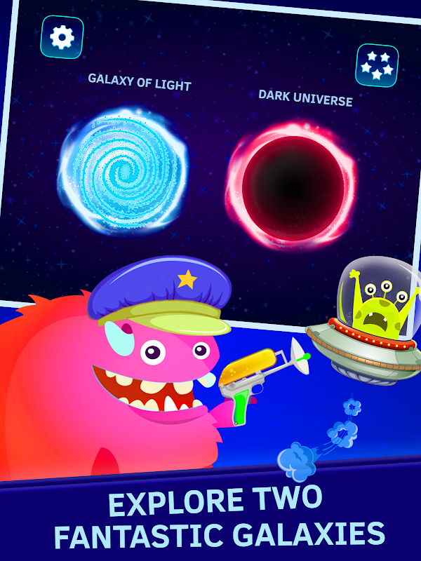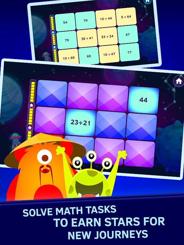 سفر بین کهکشان ها ، کشف سیستم های جدید سیاره ای ، کشف 200+ سیاره و حتی با بازی های بازی های پازل ریاضیات با بیگانگان ملاقات کنید. سفینه فضایی خود را بر روی سیارات ناشناخته فرود آورید تا از منابع لازم برای ماموریت های جدید سیاره ای برخوردار شوید. اما شما باید برای این منابع بجنگید. هر سیاره شما را با بچه های کارت حافظه با وظایف جمع و تفریق ، ضرب و تقسیم به چالش می کشد. بازی های مسابقه ریاضی را برای جمع آوری ستاره هایی که برای رسیدن به کهکشان های جدید ضروری هستند ، حل کنید.