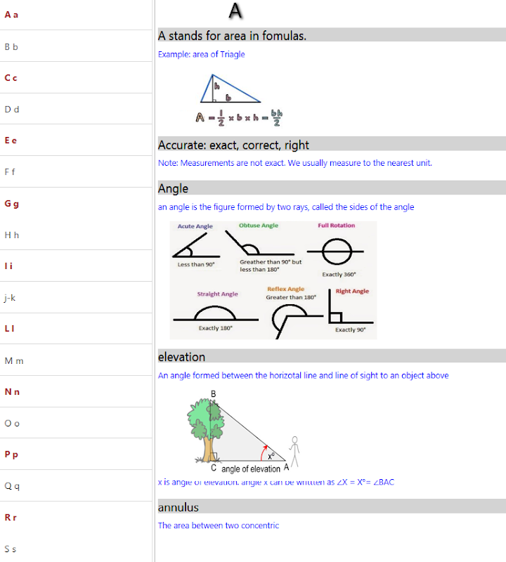 Mathematic pictures dictionary. For K6 to K 12. Easy understand with list of Alphabets from A-Z.