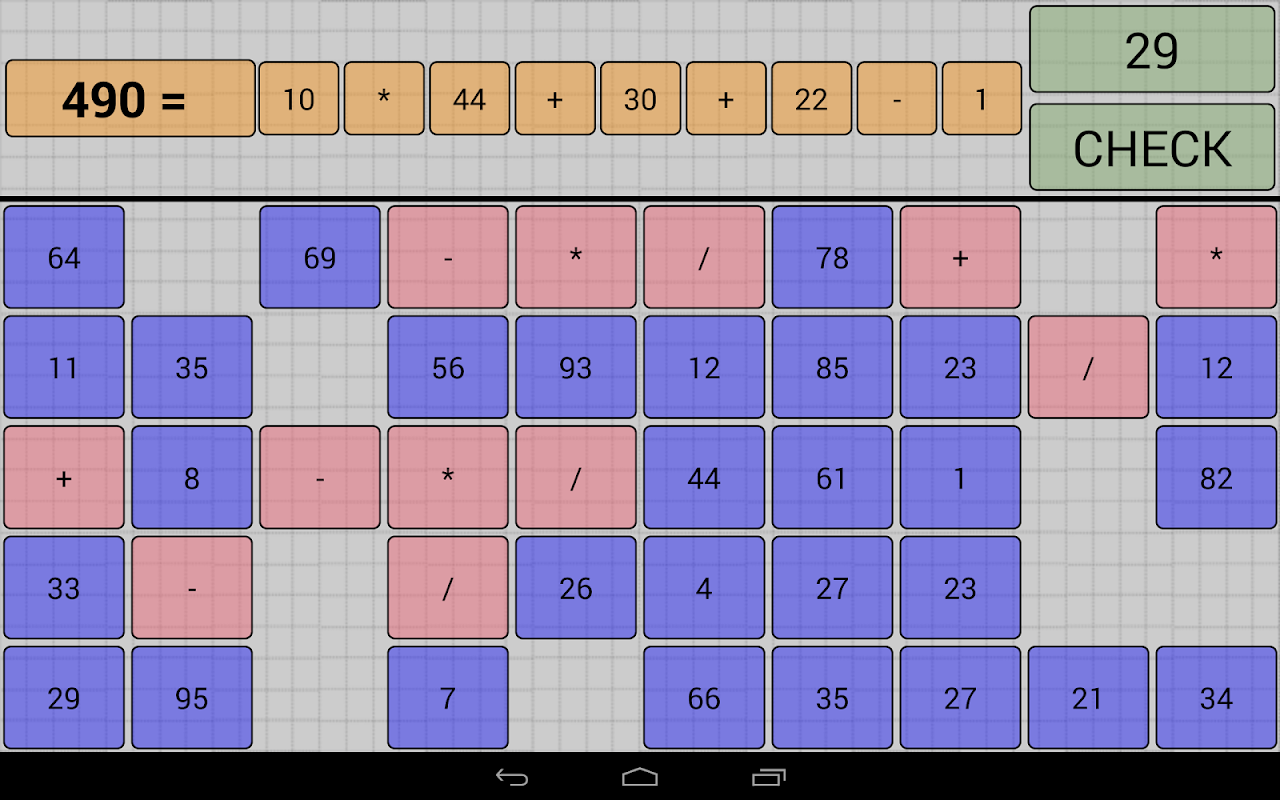 The rules are simple. You have random destination number and a lot of number from 1 to 100, from those numbers You need to create equation to get your destination number. You can create maximum of 4 operation on those numbers.