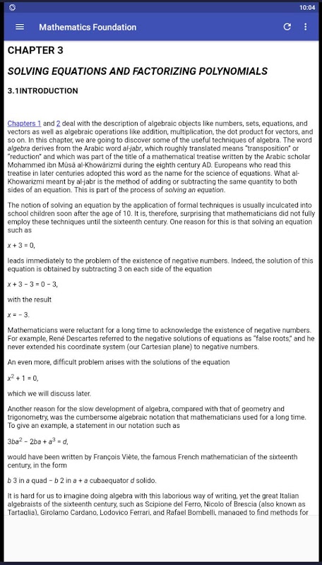 There is a strong emphasis in this app on the unfolding and development of the concepts, and there are comments throughout the app to help the reader trace the historical development of mathematics. Of course, students also need to develop their skills. For this reason, there are many exercises included at the ends of the chapters, and students are encouraged to do all of them as an essential part of working through the app. The range of topics in this app, and examples that demonstrate their interplay and interconnectedness is another unique aspect of the app. This is a rewarding aspect of learning mathematics, which university students are typically not exposed to because of the way current-day university courses are organized.