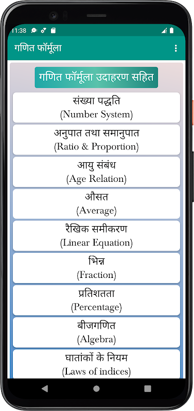 این برنامه فراهم می کند تمام فرمول های ریاضی با نمونه های خود را در زبان هندی.
