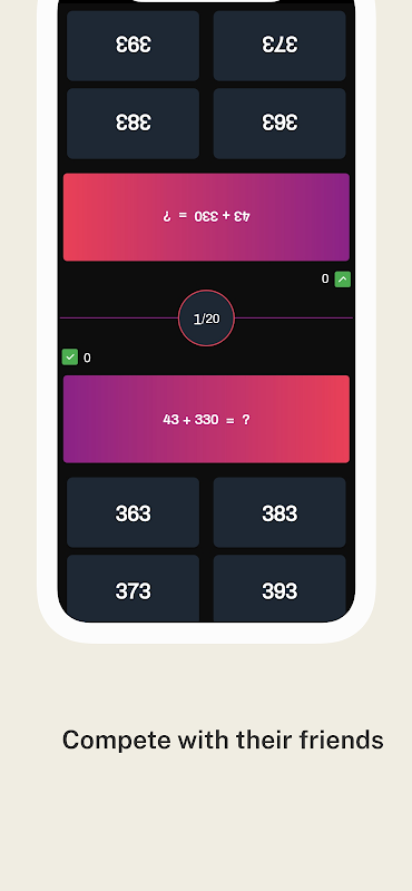 چالش: در این حالت، بچهها میتوانند خود را با سؤالات ترکیبی از تمام عملیاتهای حسابی به چالش بکشند. آنها همچنین می توانند با دوستان و خانواده خود در حالت چند نفره رقابت کنند.