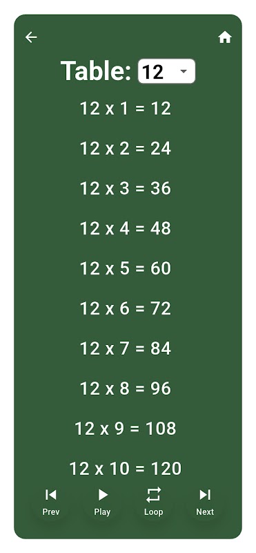 حالت تکرار را فعال کنید تا بارها و بارها جدول را بشنوید - مناسب برای به خاطر سپردن.