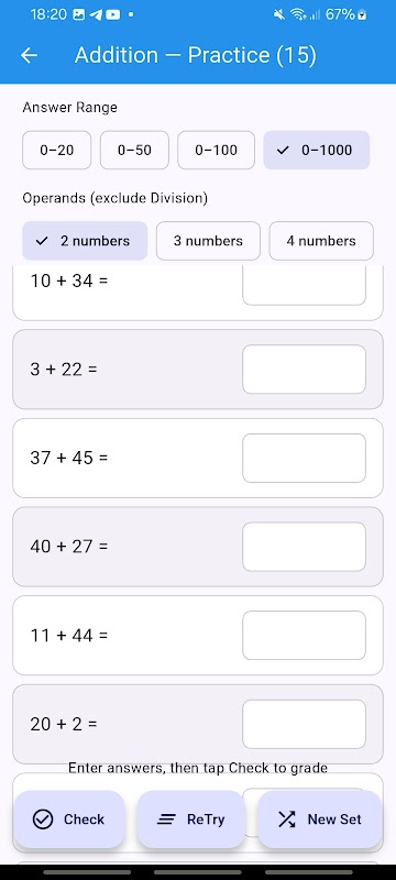 جلسات کوتاه و مداوم، سرعت و دقت را افزایش میدهند و در عین حال انگیزه را بالا نگه میدارند. چه تازه شروع به یادگیری حقایق اعداد کرده باشید و چه برای کلاس و آزمونها آماده شده باشید، MathSet باعث میشود تمرین مانند یک بازی به نظر برسد - و پیشرفت ارزشمند باشد.