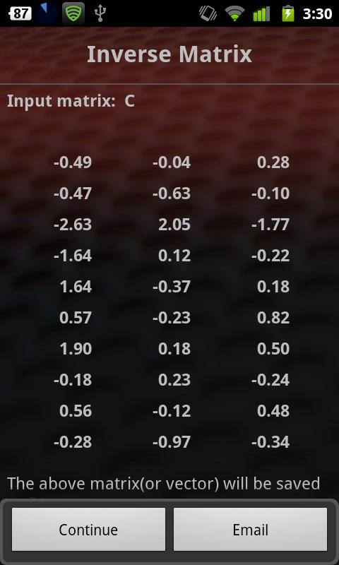 Matrix Calculator Free is a free trial version of Matrix Calculator Pro. The free version is limiting to handling matrices with dimensions less than 3. For the matrices bigger than 2 by 2, the result from various matrix operations including matrix inverse is partially shown.