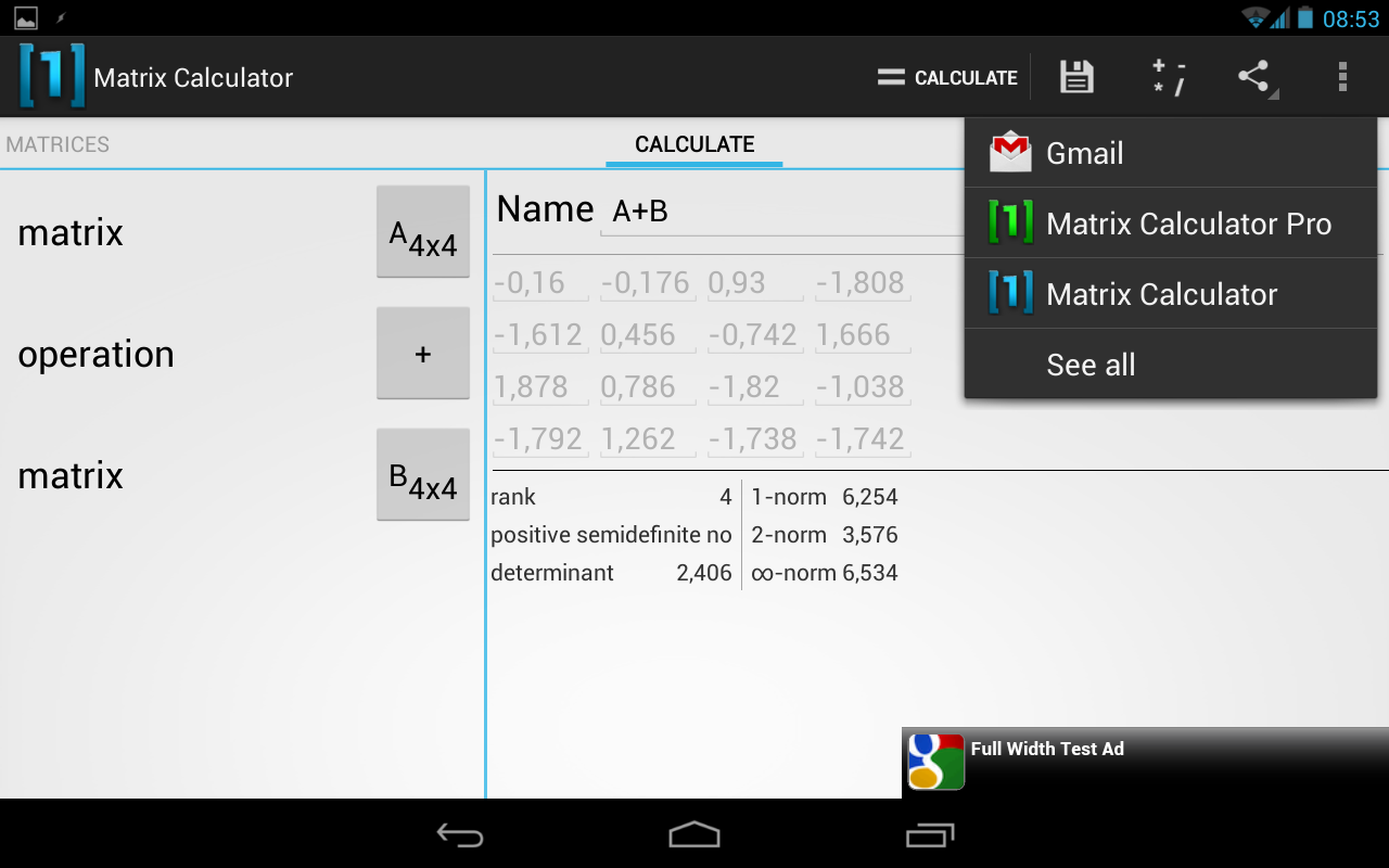 محاسبات سریع و آسان با ماتریس ها در گوشی های هوشمند آندروید یا تبلت خود را.