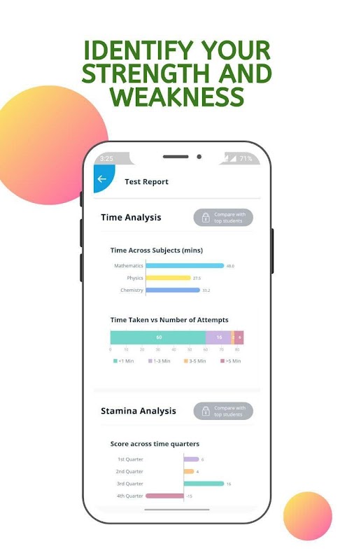 . بهترین در آزمونهای تمرینی صنعت مناسب برای الگوهای امتحانی واقعی JEE Main، JEE Advanced، NTSE و سایر آزمونهای رقابتی با تجزیه و تحلیل عالی از هنر، که به شما کمک میکند نقاط قوت و ضعف خود را شناسایی کنید و به شما یک مقایسه کلی با سایر دانشآموزان در سراسر جهان ارائه میکند. کشور.