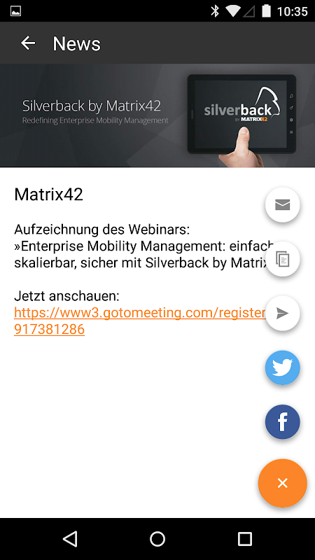 Matrix42 Mobile delivers the power of Matrix42 Workspace Management at your users' fingertips, anytime and anywhere. It provides a simple, intuitive interface for end users to access your service catalog, place orders, submit help desk tickets, check the real-time status of orders and tickets, view company news and browse the company address book - all from the convenience of their smartphones and tablets.