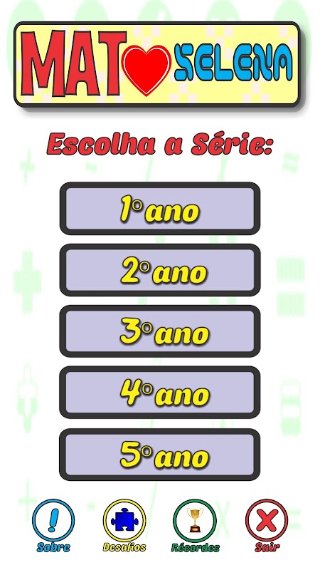 O aplicativo apresenta um teste de matemática com 10 questões de acordo com os descritores da nova Base Nacional Curricular Comum. Cada série possui um teste.