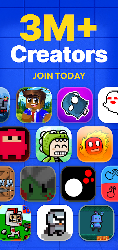خلاقیت خود را آزاد کنید و شروع به ساخت بازی های خود، مستقیماً از تلفن خود کنید! یا در دریایی از سرگرمی شیرجه بزنید و در انبوهی از بازی های ساخته شده توسط دیگران کاوش کنید. سفر شما از سرگرمی و الهام بی پایان از اینجا شروع می شود!