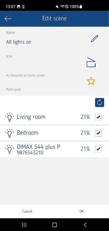 پس از شروع برنامه، دستگاه های جدید را می توان اضافه کرد، یا دستگاه هایی که قبلا افزوده شده اند یا سناریوهای روشنایی تدریس شده و مورد علاقه ها را می توان انتخاب کرد.