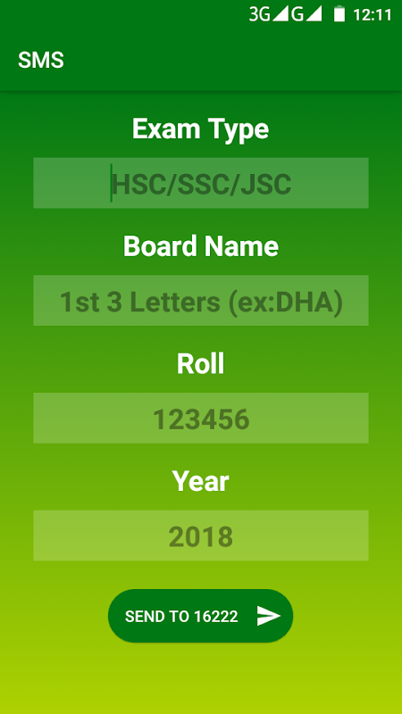 ২/ এমএমএস এর মাধ্যমেঃ- সেজন্য অ্যাপসের SMS অপশানে যেয়ে রোল নাম্বার, সাল ইত্যাদি পূরণ করে সেন্ড করলে ফিরতি এসএমএস এ রেজাল্ট পাওয়া যাবে।