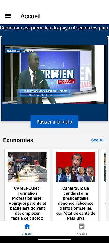 تلویزیون Camnews24 را مستقیماً از دستگاه خود تماشا کنید! Camnews24 اخبار فوری، امور جاری، و نمایش های اختصاصی در مورد سیاست، تجارت، ورزش، سرگرمی و موارد دیگر را برای شما به ارمغان می آورد.