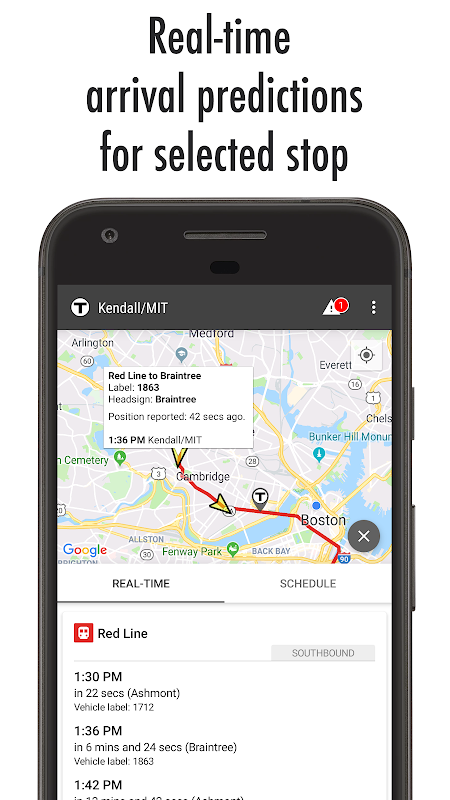 پیش بینی زمان رسیدن به مقصد، برنامه و هشدار خدمات برای کل سیستم MBTA