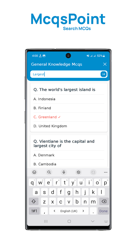 تعداد زیادی McQs دانش عمومی برای آمادگی آزمون.